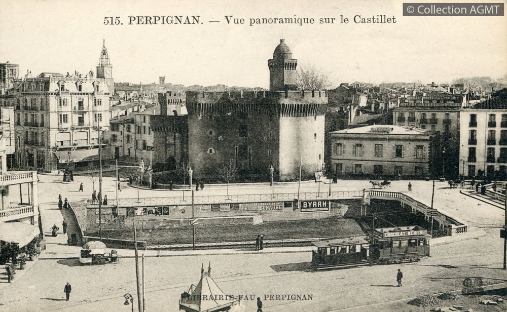 [Compagnie] CCTEIndex. décimale : 3141 Tramway et métro léger urbain - véhicule - service régulier, transport de voyageur Perpignan : vue panoramique sur le Castillet [document graphique à deux dimensions] . - Perpignan : Librairie Fau, [ca 1910] . - 1 carte postale : noir et blanc ; 9 x 14 cm. - (Fau; 515) .