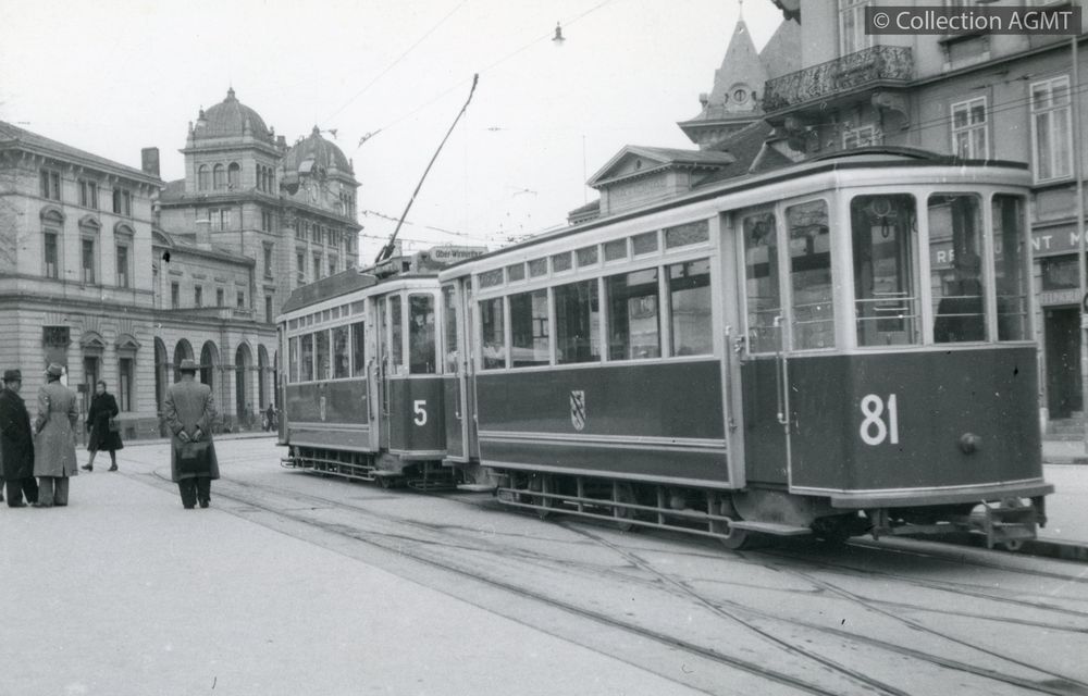 3141(494.24)_SVB_1957-01.jpgImage Jpeg PermalinkPermalinkUn convoi VW à destination d'Ober-Winterthur, formé de l'automotrice 5 et de la remorque 81, marque l'arrêt sur la place de la Gare / G. Masino