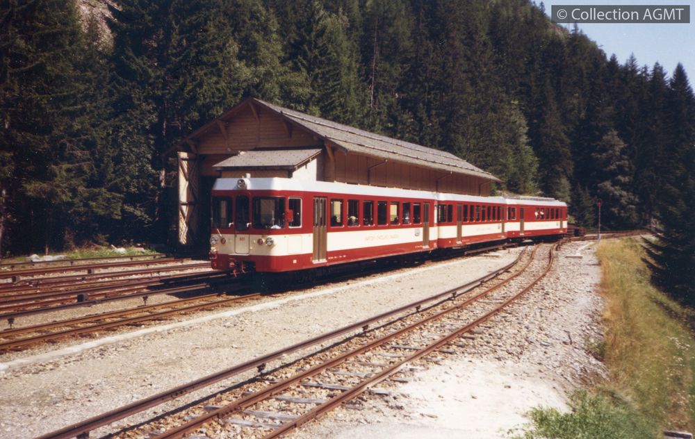 [Ligne] VallorcineIndex. décimale : 4349 Chemin de fer interurbain et vicinal - véhicule - services spéciaux (film, dépannage, exposition, service supplémentaire, transports spéciaux, baptême, inauguration, etc.) Un convoi du MC, formé de l'automotrice ABDeh 4/4 14 et de la voiture pilote Bt4 51 qui assure une course spéciale à l'occasion du 75e anniversaire de la ligne stationne en gare du Châtelard-Frontière [document graphique à deux dimensions] / Gaston Guignard, Photographe . - [S.l.] : Kodalux, 1987 . - 1 photographie : couleur ; 10 x 15 cm.