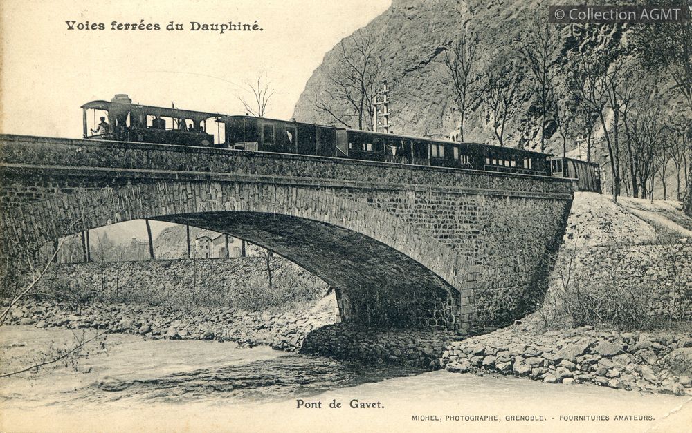 [Compagnie] VFDIndex. décimale : 4341 Chemin de fer interurbain et vicinal - véhicule - service régulier, transport de voyageur Voies ferrées du Dauphiné : pont de Gavet [document graphique à deux dimensions] / Michel, Photographe . - Grenoble : Michel, photographe, [ca 1910] . - 1 carte postale : noir et blanc ; 9 x 14 cm.