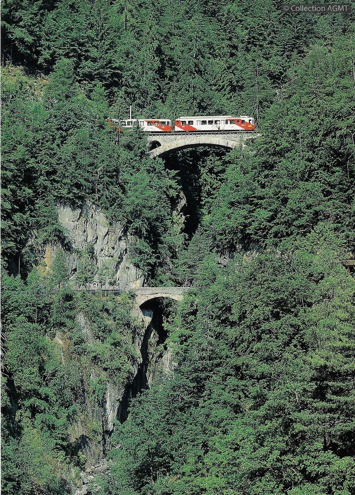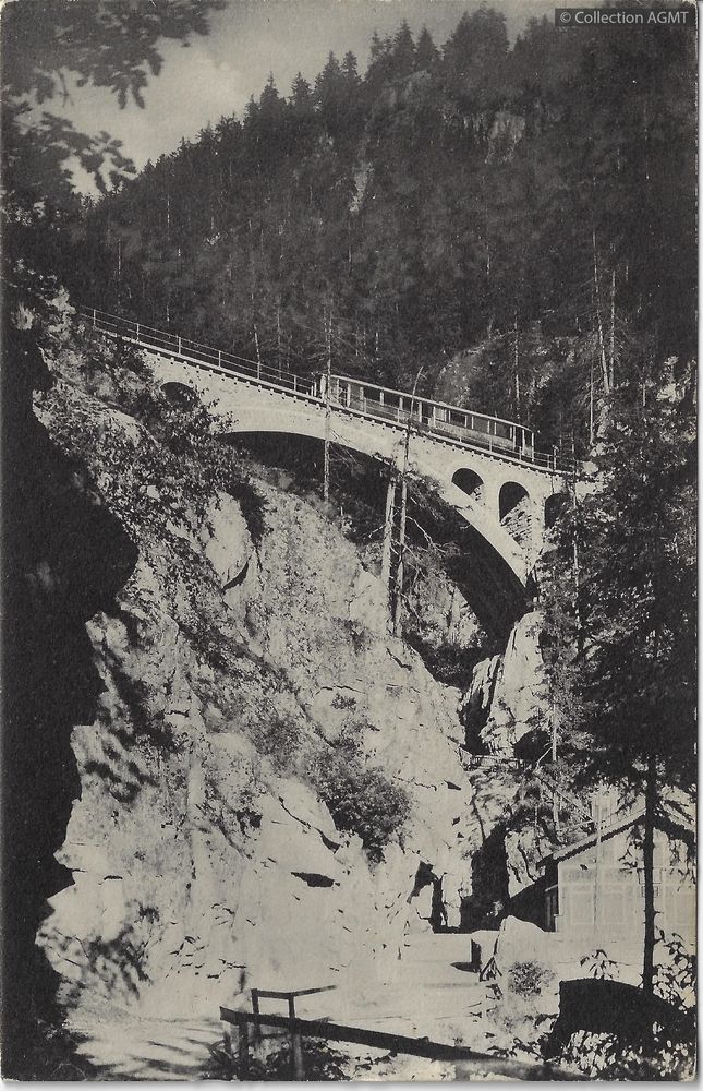 [Ligne] MartignyIndex. décimale : 4341 Chemin de fer interurbain et vicinal - véhicule - service régulier, transport de voyageur Gorges du Triège : les trois ponts [document graphique à deux dimensions] . - Lausanne : Edition Perrochet, [ca 1935] . - 1 carte postale : noir et blanc ; 14 x 9 cm. - (Perrochet; 12098) .