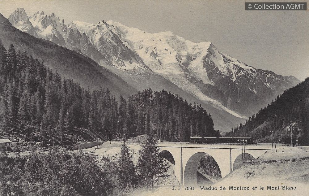 [Ligne] VallorcineIndex. décimale : 4341 Chemin de fer interurbain et vicinal - véhicule - service régulier, transport de voyageur Chamonix : la ligne PLM, le Mont-Blanc vu des Tines [document graphique à deux dimensions] . - [S.l.] : [s.n.], [ca 1910] . - 1 carte postale : noir et blanc ; 14 x 9 cm.