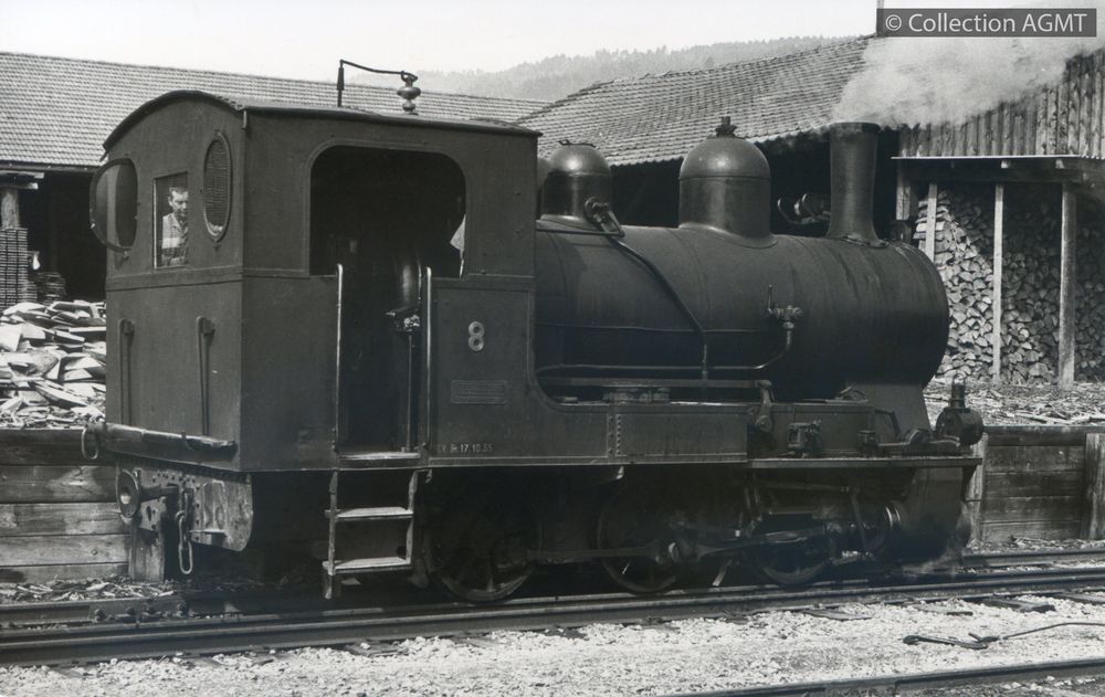 3345(494.24)_MBB_1967-16.jpgImage JpegLa locomotive à vapeur no 8 de la scierie Renfer stationne au quai à combustible à Boujan / Jeremy Wiseman