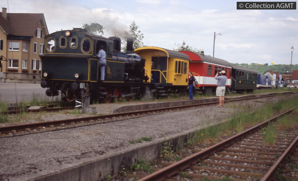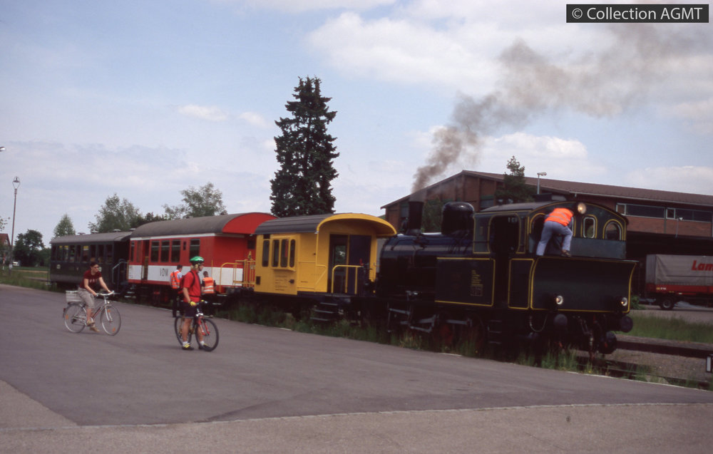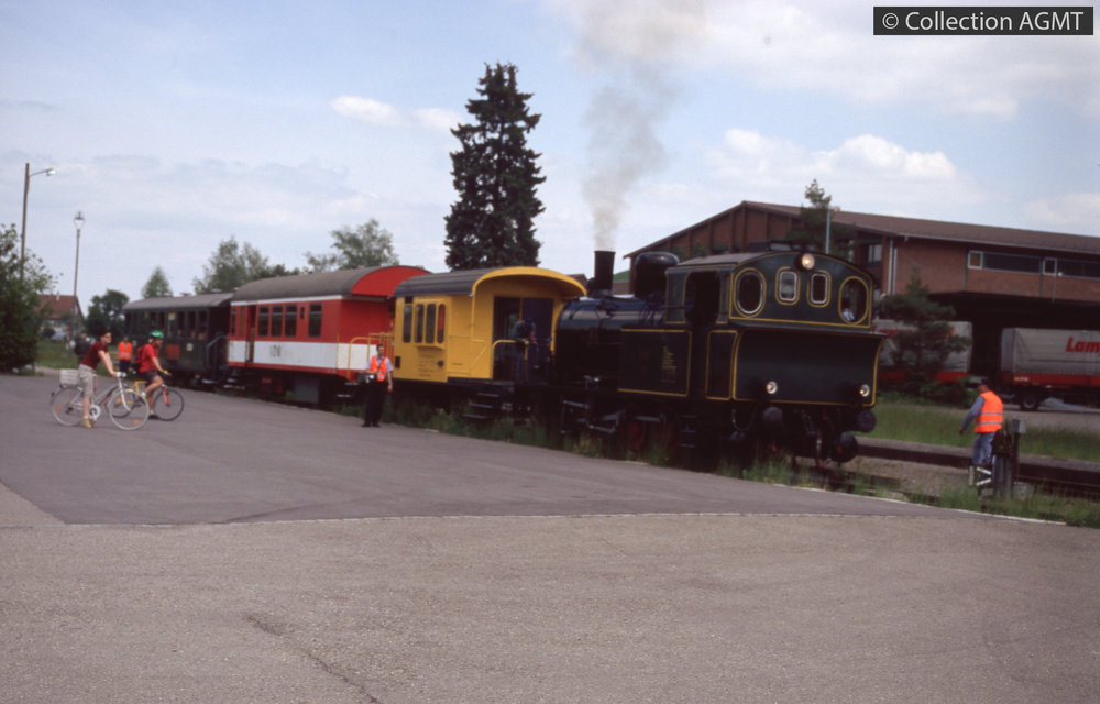 4348(494.29)_VDM_2004-04_d.jpgImage JpegUn train à vapeur du VDM, mené par la locomotive Ed 3/3 "Muni", attend l'heure du départ pour Singen en gare d'Etzwilen / Jeremy Wiseman