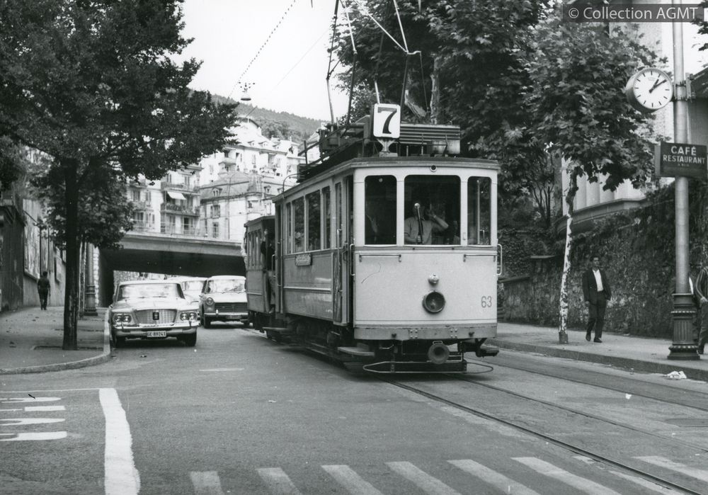 PermalinkPermalinkPermalinkUn convoi de la ligne 7 des TN à destination de la place Pury, formé de l'automotrice 64 et de la remorque 102, franchit le carrefour entre l'avenue de la Gare et la rue des Terreaux / Jeremy Wiseman