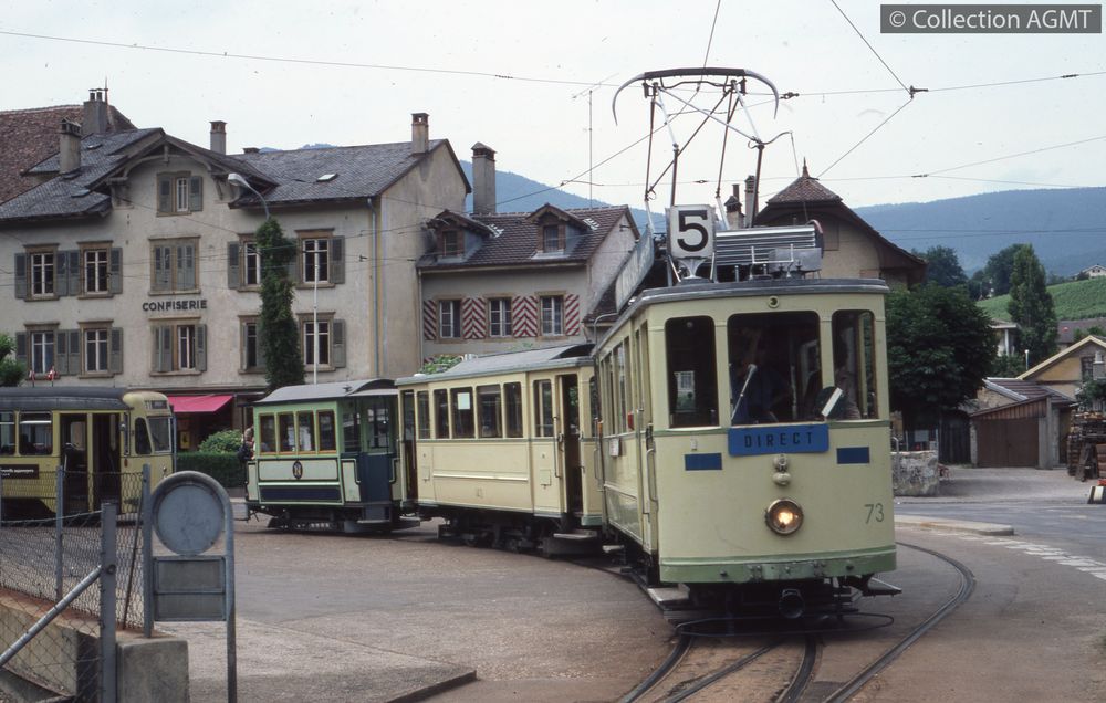 4149(494.43)_TN_1981-07_d.jpgImage JpegEn service sur la ligne 5 lors des festivités du Littorail, un convoi TN formé de l'automotrice 73 et de deux remorques attend l'heure du départ de Boudry / Jeremy Wiseman