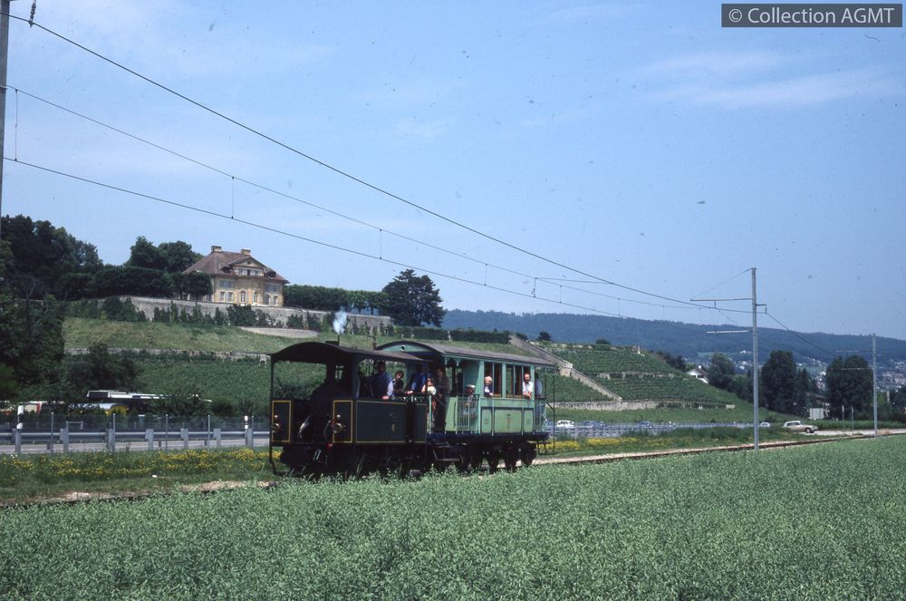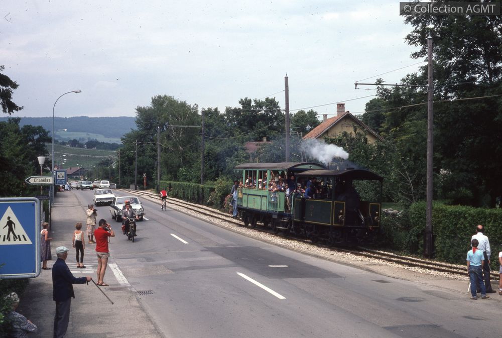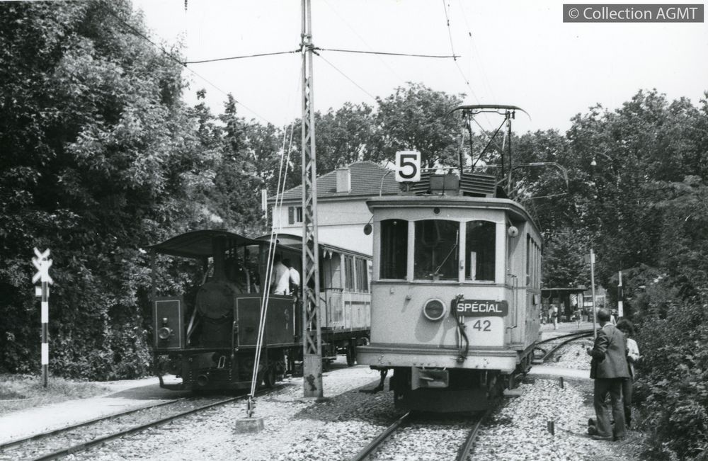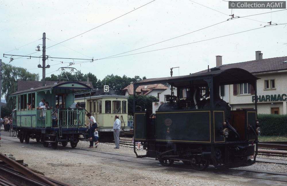 Affiner la recherche  Interroger des sources externesAssurant une course spéciale de la ligne 5 lors des festivités du Littorail, l'automotrice 42 des TN arrive en gare de Colombier ou stationne un convoi formé de la locomotive à vapeur no 4, ex-Ferrovie Padane, préservée par le BC, et de la remorque 121 des TN, ex-NCB / Jeremy Wiseman