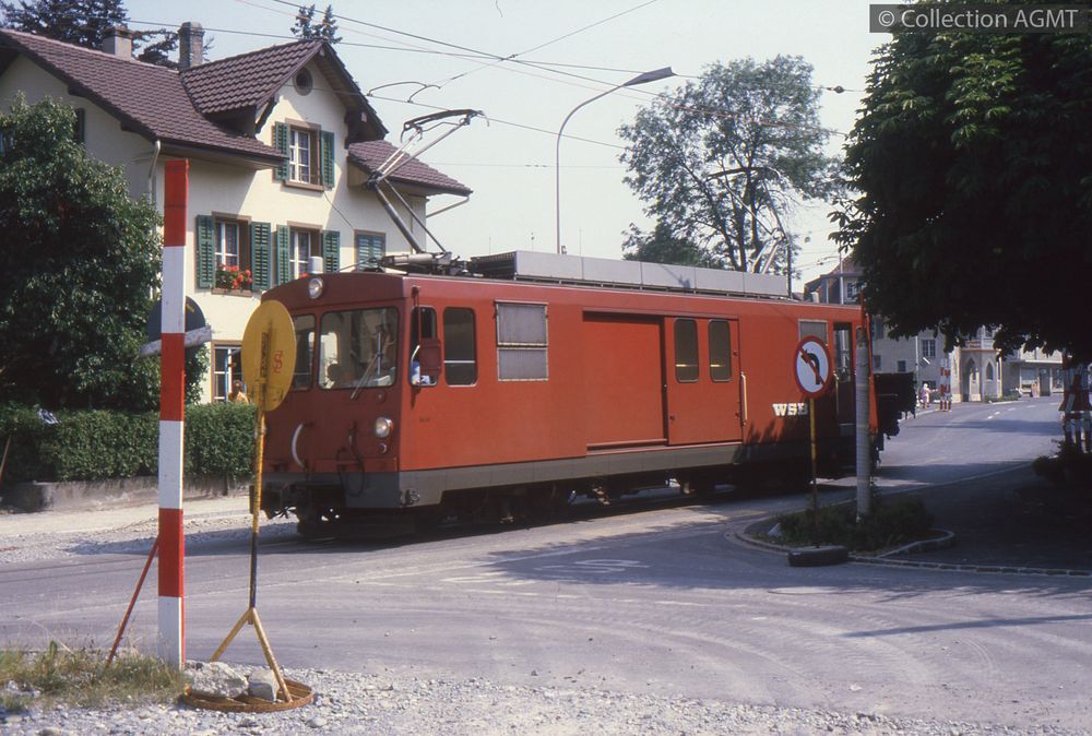 Affiner la recherche Interroger des sources externesUn convoi de marchandises du WSB, mené par un fourgon automoteur série 43-45, circule sur la chaussée à Menziken / Jeremy Wiseman