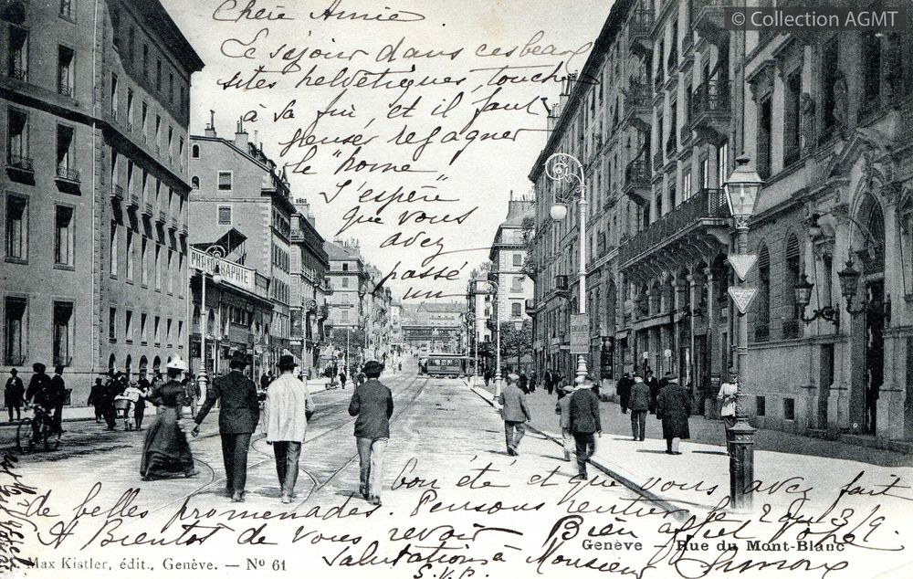 [Année] 1900Index. décimale : 3141 Tramway et métro léger urbain - véhicule - service régulier, transport de voyageur Genève : place de Bel-Air [document graphique à deux dimensions] . - [S.l.] : [s.n.], [ca 1900] . - 1 carte postale gaufrée : noir et blanc ; 9 x 14 cm.