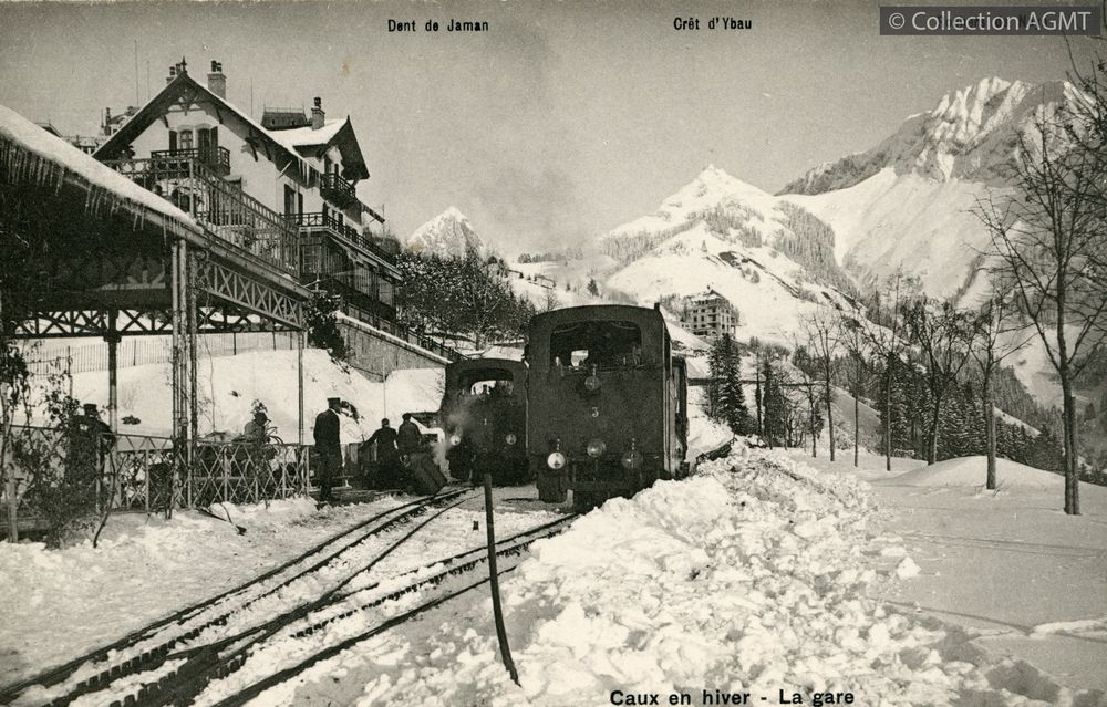 [Ligne] Rochers de NayeIndex. décimale : 4341 Chemin de fer interurbain et vicinal - véhicule - service régulier, transport de voyageur Caux en hiver : la gare [document graphique à deux dimensions] . - Lausanne : Editions Louis Burgy, [ca 1910] . - 1 carte postale : noir et blanc ; 9 x 14 cm. - (L. Burgy; 5524) .
