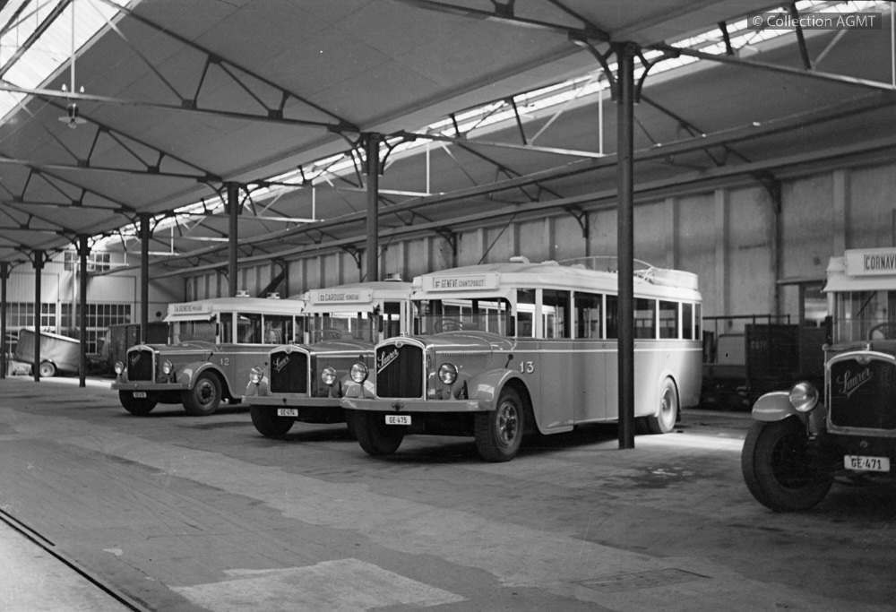 Genève : les autobus Saurer 11, 12 et 13 de la CGA stationnent côte à côte dans une halle du dépôt de la Jonction [document graphique à deux dimensions] / Willy Boegli (1916-1994), Photographe . - [Petit-Lancy : M. Kohler], [2016] . - 1 photo : noir et blanc ; 11 x 15 cm. Langues : Français ( fre) |  |