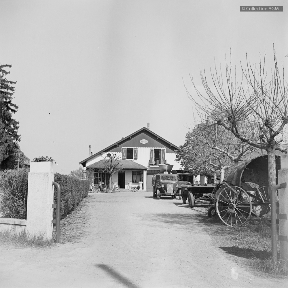 Vue de face de l'ancien dépôt de tram de Douvaine transformé en garage de réparation d'automobiles [document graphique à deux dimensions] / Willy Boegli (1916-1994), Photographe . - [Petit-Lancy : M. Kohler], [2016] . - 1 photo : noir et blanc ; 11 x 11 cm. Langues : Français ( fre) |  |