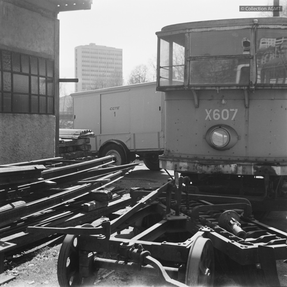 Genève, dépôt de la Jonction : une râcleuse à neige stationne devant la raboteuse de l'usure ondulatoire des voies de la CGTE, X2 607 [document graphique à deux dimensions] / Willy Boegli (1916-1994), Photographe . - [Petit-Lancy : M. Kohler], [2016] . - 1 photo : noir et blanc ; 11 x 11 cm. Langues : Français ( fre) |  |