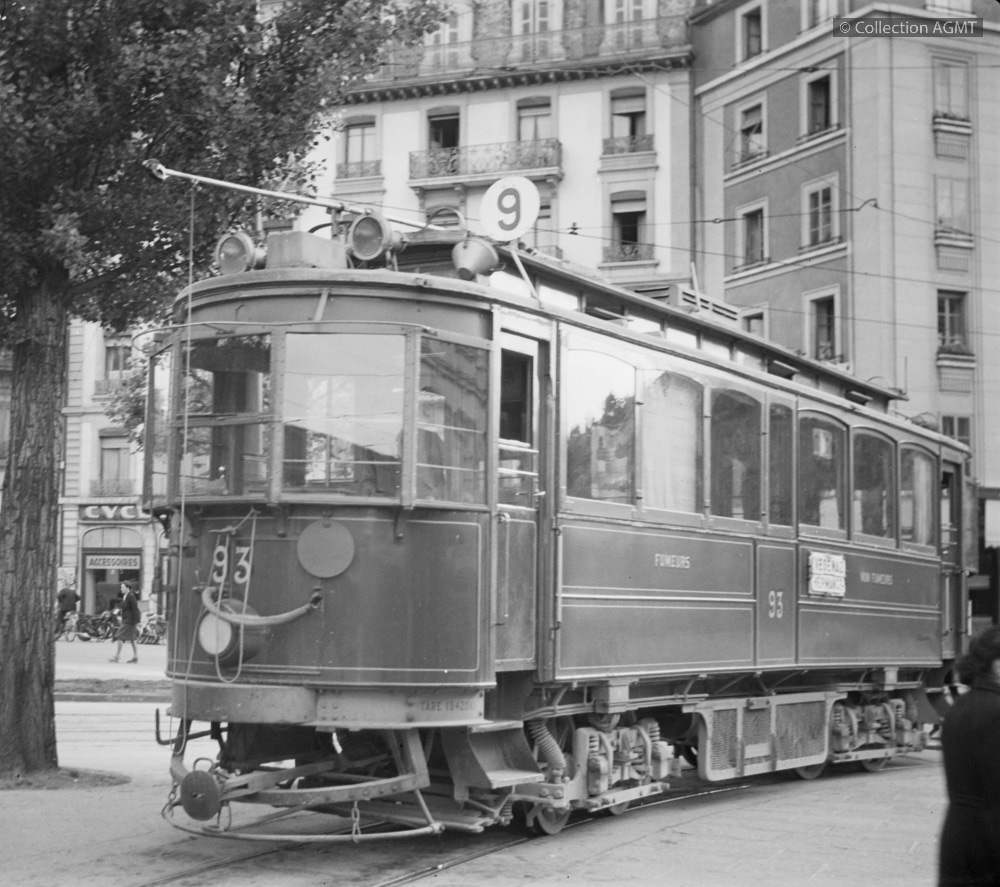 Genève, rond-point de Rive : en service sur la ligne 9, l'automotrice Ce 4/4 93 de la CGTE manœuvre sur une voie d'accès à la rue Pierre Fatio [document graphique à deux dimensions] / Willy Boegli (1916-1994), Photographe . - [Petit-Lancy : M. Kohler], [2016] . - 1 photo : noir et blanc ; 11 x 12 cm. Langues : Français ( fre) |  |