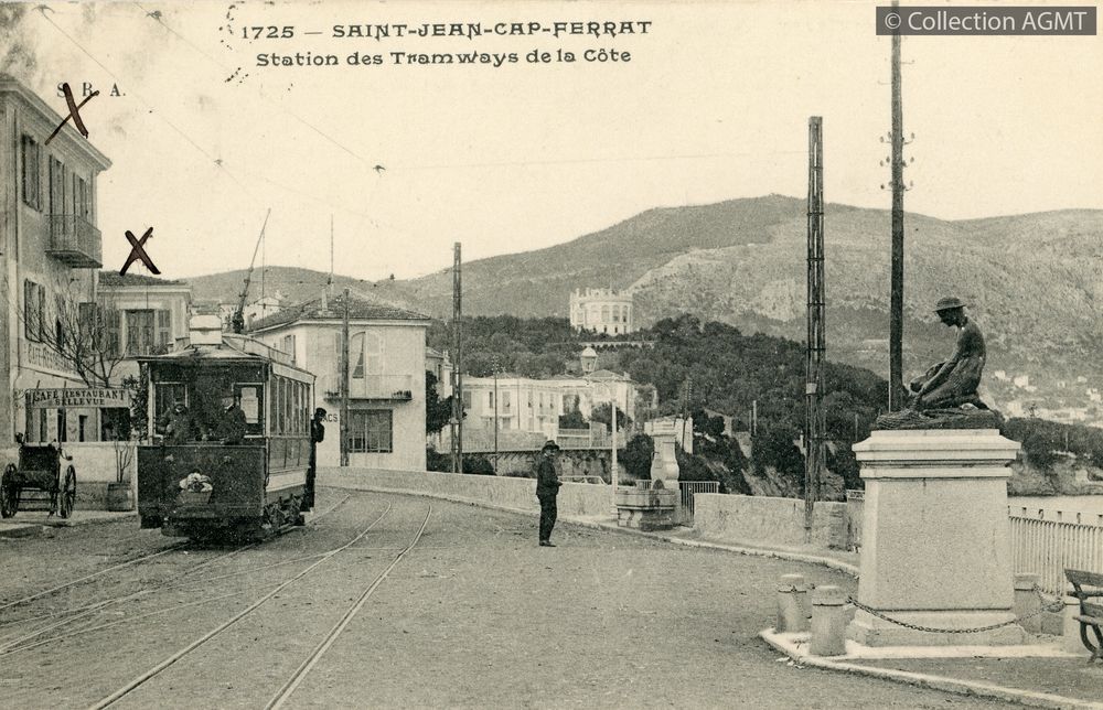[Compagnie] TNLIndex. décimale : 4141 Tramway et métro léger interurbain et vicinal - véhicule - service régulier, transport de voyageur Saint-Jean-Cap-Ferrat : station des tramways de la Côte [document graphique à deux dimensions] . - [S.l.] : SRA, [ca 1908] . - 1 carte postale : noir et blanc ; 9 x 14 cm. - (SRA; 1725) .
