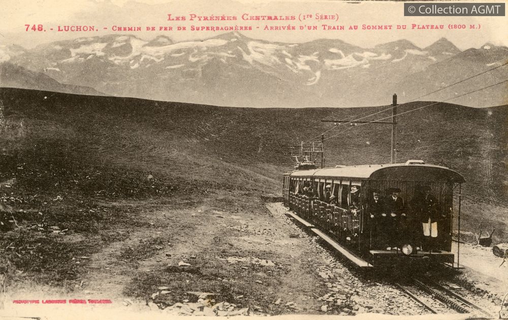 [Compagnie] CFHMPIndex. décimale : 4341 Chemin de fer interurbain et vicinal - véhicule - service régulier, transport de voyageur Les Pyrénées Centrales (1re série). Luchon : chemin de fer de Superbagnères : arrivée d'un train au sommet du plateau (1800 m) [document graphique à deux dimensions] . - Toulouse : Phototypie Labouche frères, [ca 1912] . - 1 carte postale : noir et blanc ; 9 x 14 cm. - (Labouche frères; 748) .