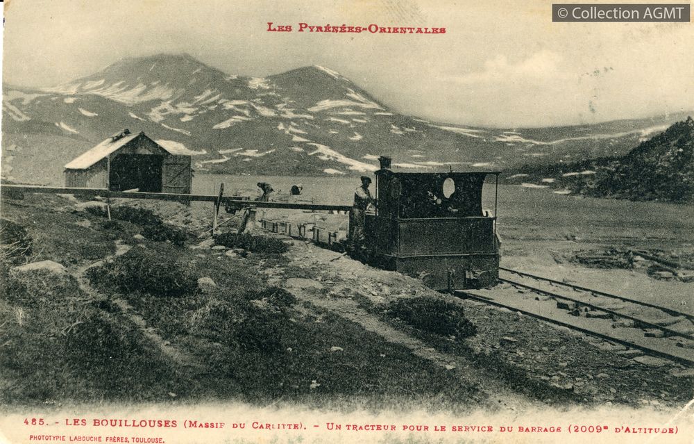 [Compagnie] MidiIndex. décimale : 4345 Chemin de fer interurbain et vicinal - véhicule - service marchandises, postal, des manœuvres Les Pyrénées-Orientales. Les Bouillouses (massif du Carlitte) : un tracteur pour le service du barrage (2009 m d'altitude) [document graphique à deux dimensions] . - Toulouse : Phototypie Labouche frères, [ca 1910] . - 1 carte postale : noir et blanc ; 9 x 14 cm. - (Labouche frères; 485) .