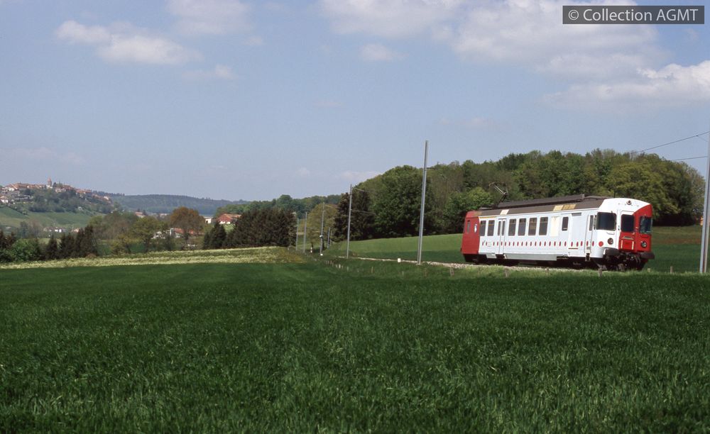 Code-barres Cote Support Localisation Section Disponibilité 6700035005 4341(494.41) GFM 1987/03 Photographie Bachet Photographies Disponible Voiture-pilote 371 en queue, une rame réversible des TPF à destination de Fribourg quitte Anet / Jeremy Wiseman