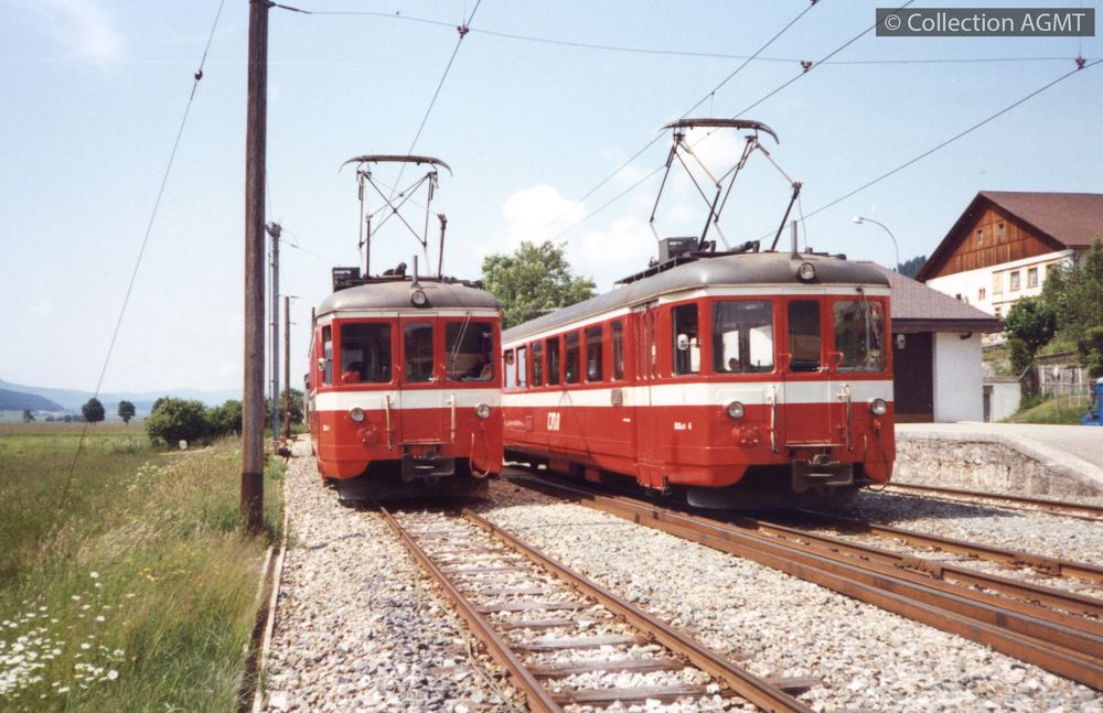 Croisement de deux automotrices des CMN en gare de La Sagne [document graphique à deux dimensions] / Gaston Guignard, Photographe . - [S.l.] : Kodalux, 1989 . - 1 photographie : couleur ; 10 x 15 cm. Langues : Français (fre)