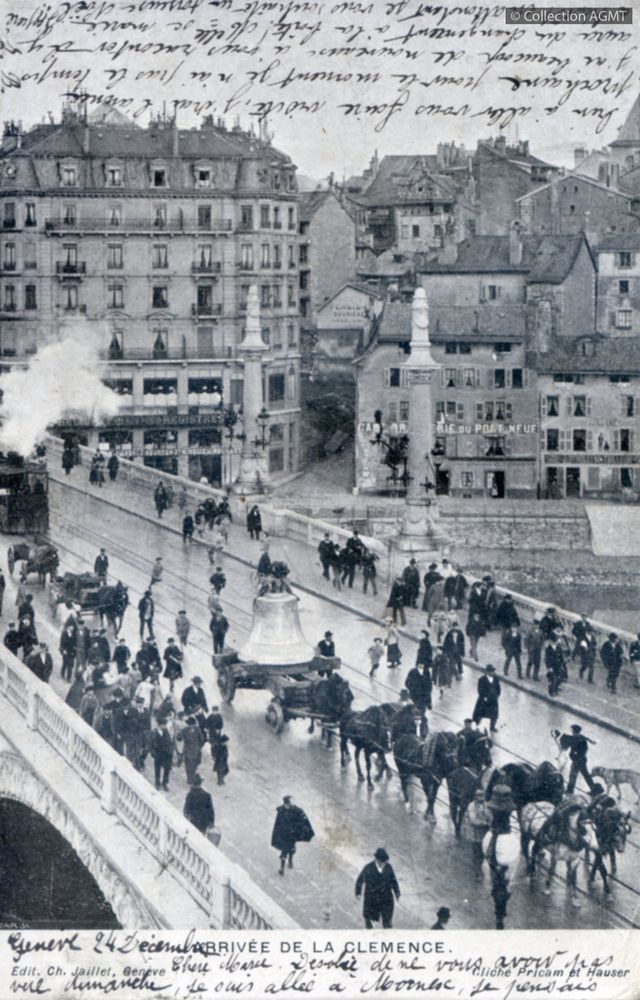 Titre : Arrivée de la Clémence Type de document : document graphique à deux dimensions Auteurs : Pricam et Hauser, Photographe Editeur : Genève : Ch. Jaillet Année de publication : [1902] Importance : 1 photo Présentation : noir et blanc Format : 14 x 9 cm Langues : Français (fre) Catégories : [Mots-clefs] Coulouvrenière, pont de la