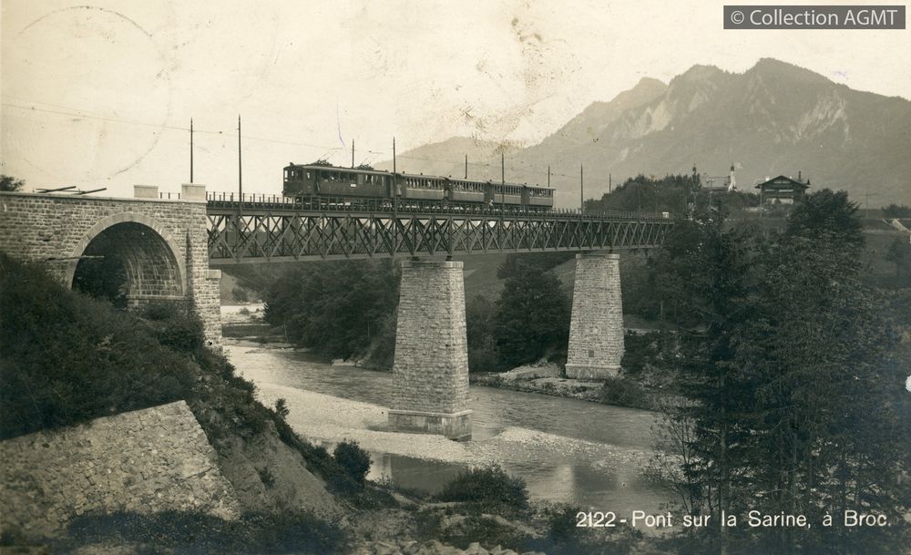 [Ligne] BulleIndex. décimale : 4341 Chemin de fer interurbain et vicinal - véhicule - service régulier, transport de voyageur Pont sur la Sarine, à Broc [document graphique à deux dimensions] . - Bulle : Libr. Ch. Morel, [ca 1915] . - 1 carte postale : noir et blanc ; 9 x 14 cm. - (Ch. Morel; 2122) .