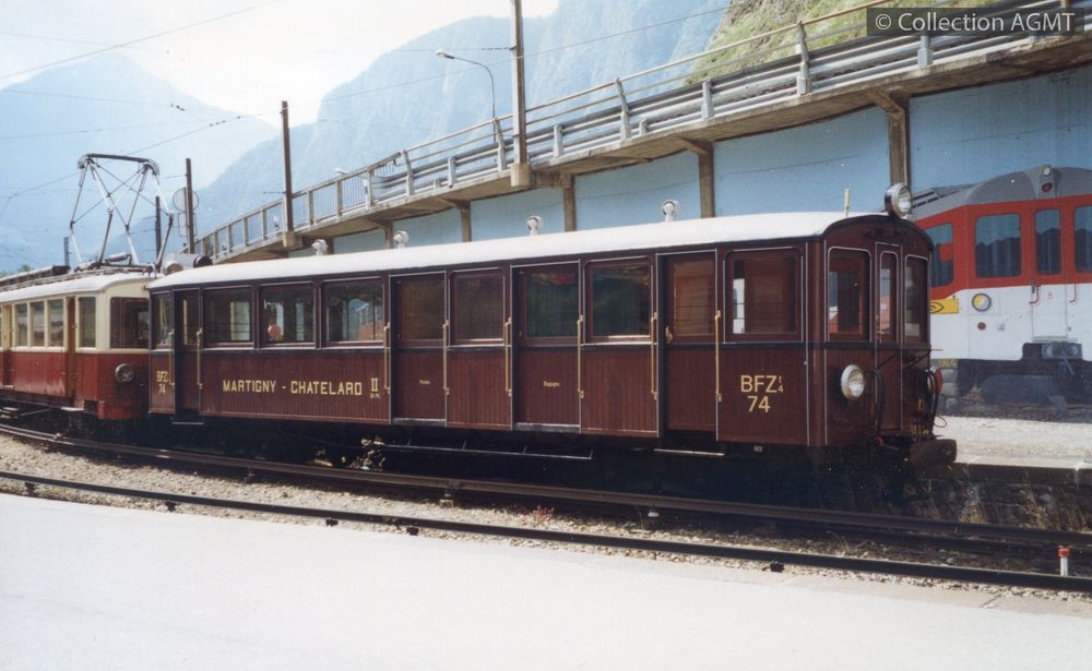 Un convoi de l'ATVT, formé de l'automotrice ABDeh 4/4 15 et de la voiture pilote BFZt 4 74, du MC, stationne en gare de Vernayaz [document graphique à deux dimensions] / Gaston Guignard, Photographe . - [S.l.] : Kodak, [ca 2000] . - 1 photographie : couleur ; 11 x 15 cm. Langues : Français ( fre) |  |