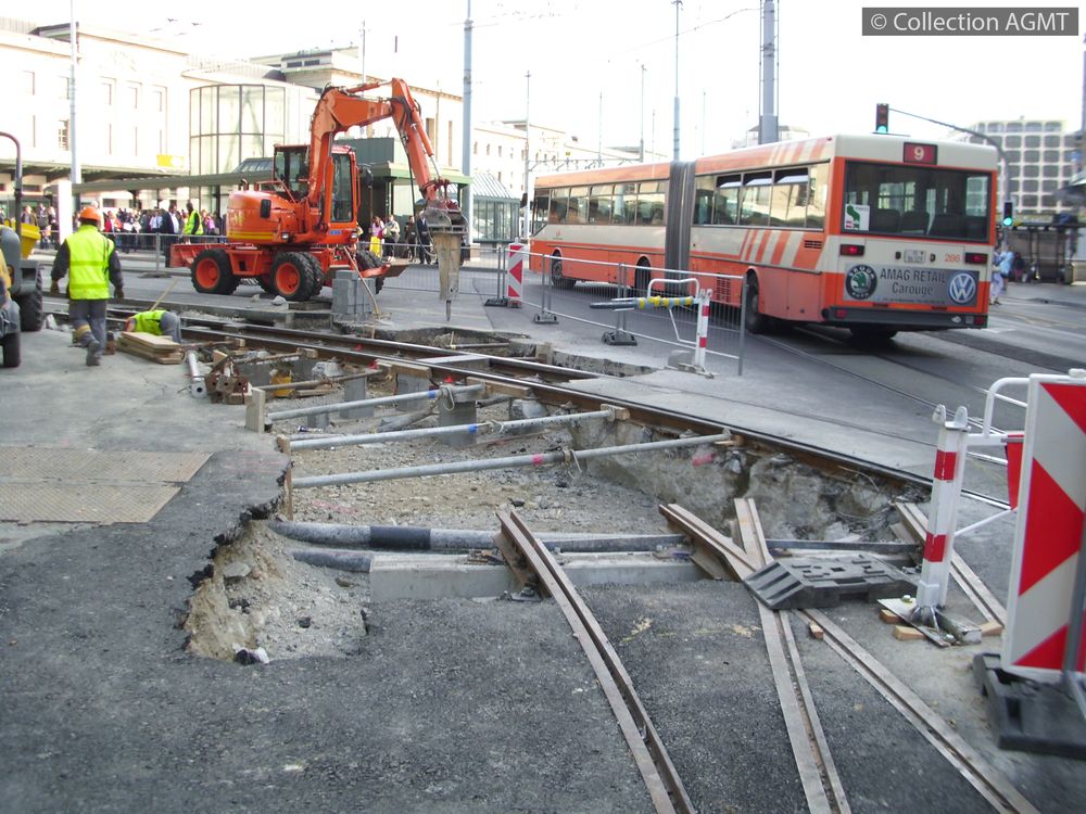 Genève, place Cornavin : la voie de tram en direction de Meyrin a été dégagée afin de permettre le raccordement de la nouvelle double voie devant l'Eglise Notre-Dame [document graphique à deux dimensions] / Cédric Noir, Photographe . - Genève : Migros, 2012 . - 1 photographie : couleur ; 9 x 12 cm. Langues : Français ( fre) |  |