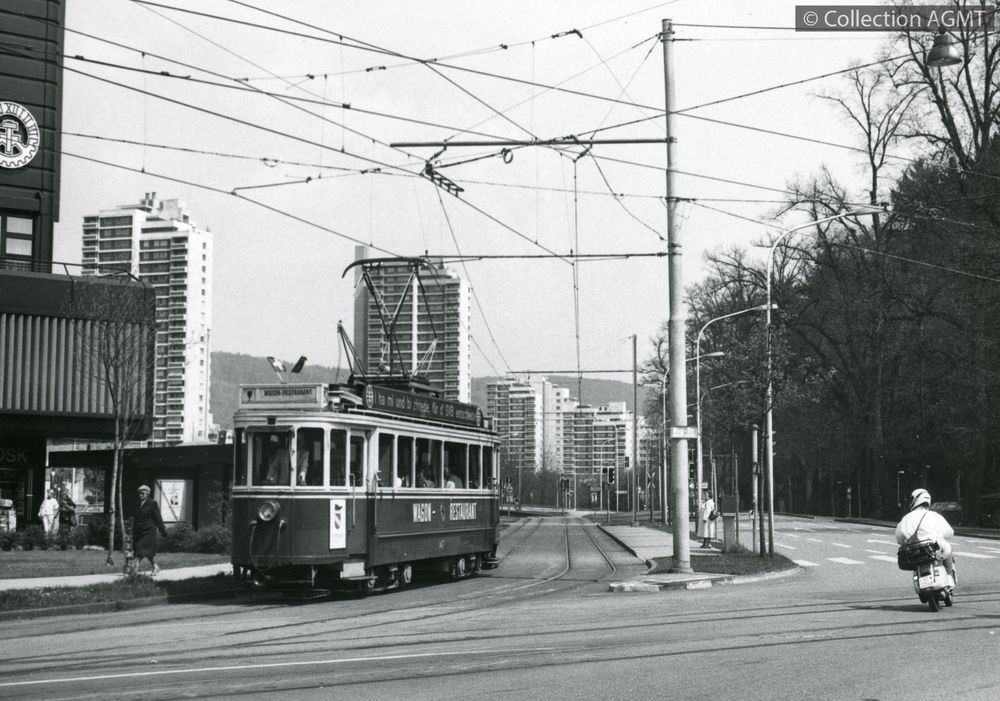 Affiner la recherche Interroger des sources externesL'automotrice 147 des SVB, "Wagon-Restaurant", débouche de la Worbstrasse sur la Muristrasse / Jeremy Wiseman