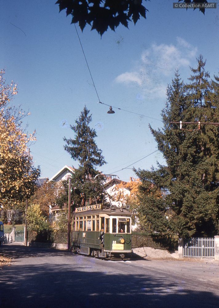 Genève, route de Chancy : en service sur la ligne 2 à destination du parc des Eaux-Vives, l'automotrice Ce 4/4 68 de la CGTE arrive au carrefour entre les routes de Chancy et de St-Georges [document projeté ou vidéo] / Jeremy Wiseman (1933-2022), Photographe . - [S.l.] : Kodachrome, [ca 1957] . - 1 diapositive : couleur ; 5 x 5 cm. Langues : Français ( fre) |  |
