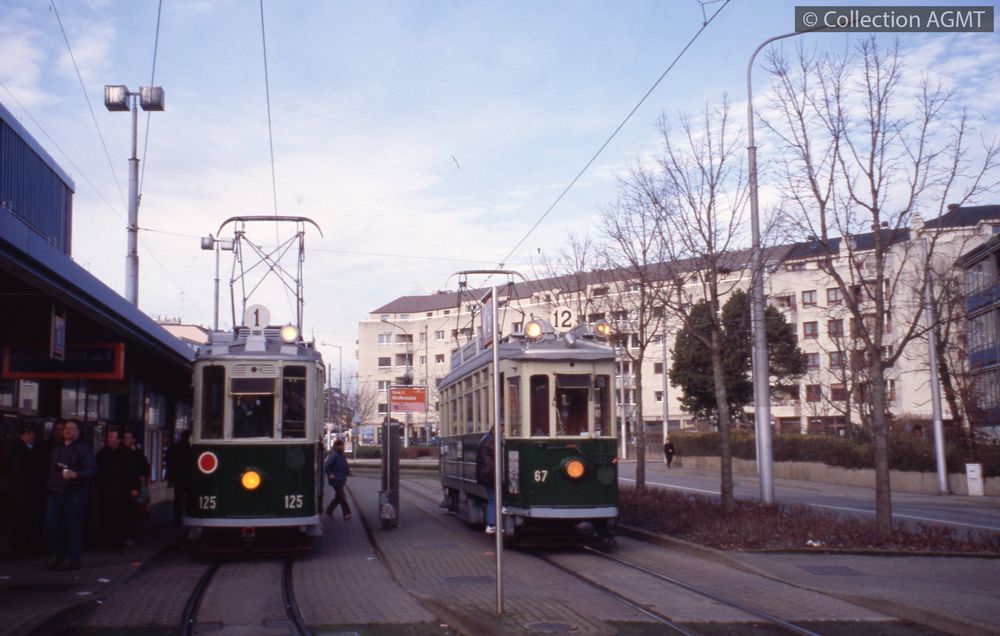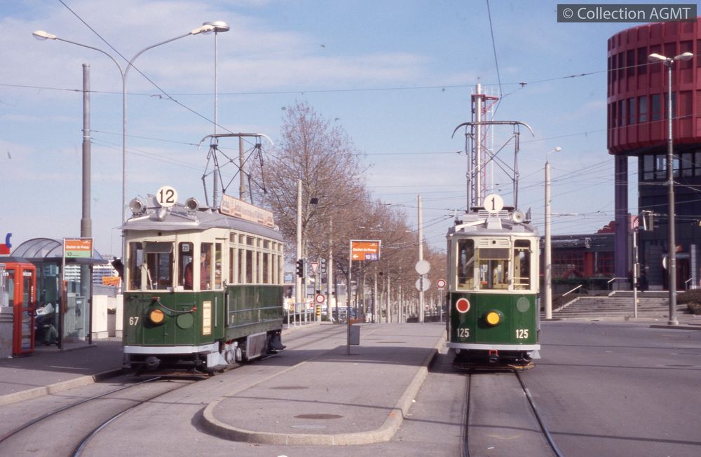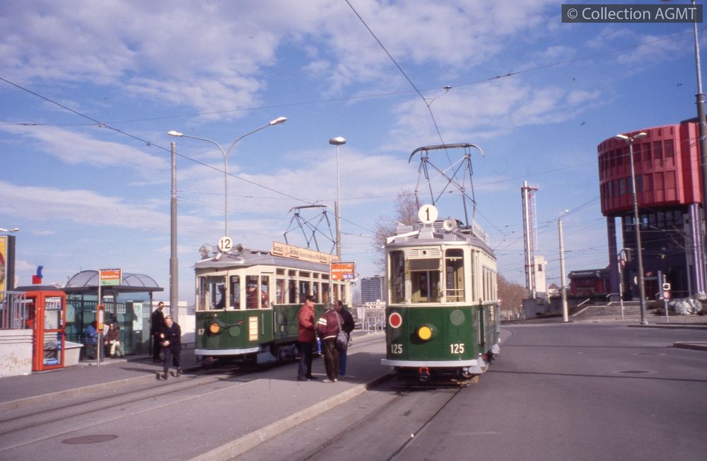 PermalinkLors du tram café-croissants AGMT de janvier 2001, les automotrices 125 et 67 se rencontrent à Moillesulaz / François Chapuis