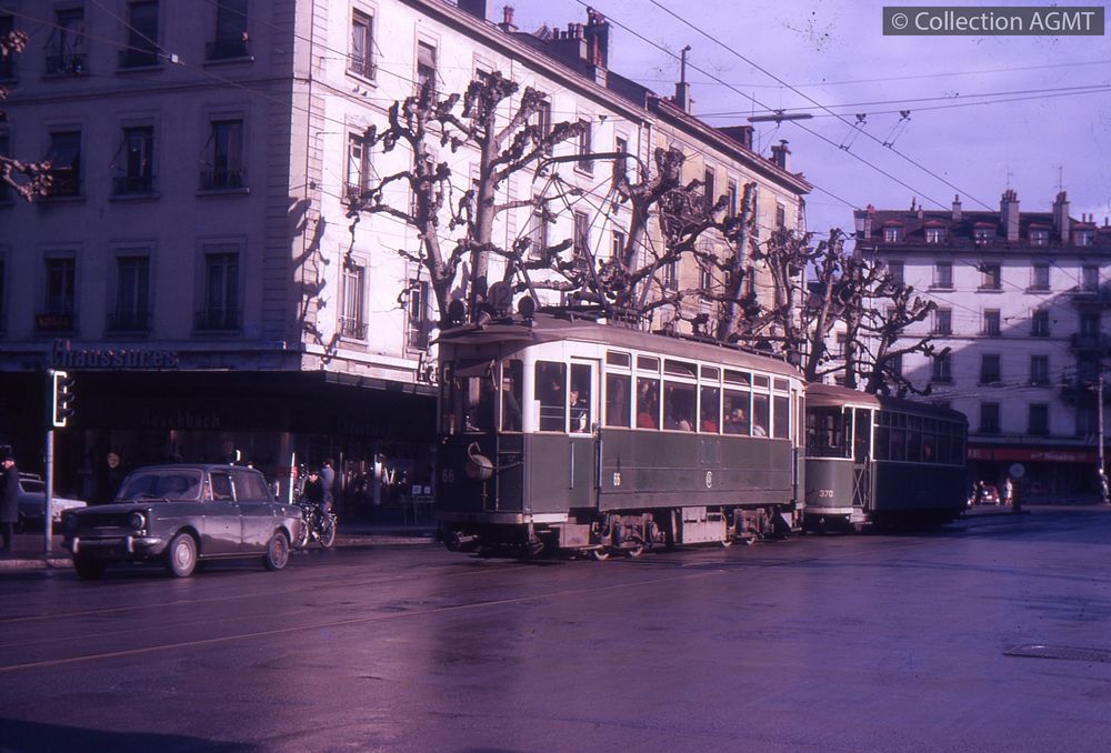 En service sur la ligne 12 à destination de Carouge, un convoi CGTE formé de l'automotrice 66 et de la remorque 370 circule au cours de Rive [document projeté ou vidéo] / Nicholas Edward Wiseman (1937-2020), Photographe . - [S.l.] : Kodak, 1970 . - 1 diapositive : couleur ; 5 x 5 cm. Langues : Français ( fre) |  |