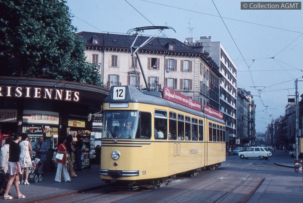 En essais sur la ligne 12 de la CGTE, l'automotrice 108 du BEB arrive au rond-point de Plainpalais en direction de Moillesulaz [document projeté ou vidéo] / Nicholas Edward Wiseman (1937-2020), Photographe . - [S.l.] : [s.n.], [ca 1972] . - 1 diapositive : couleur ; 5 x 5 cm. Langues : Français ( fre) |  |