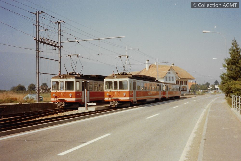 Croisement de deux rames réversibles du BTI en gare de Lattrigen [document graphique à deux dimensions] / Gaston Guignard, Photographe . - [S.l.] : Kodak, 1985 . - 1 photographie : couleur ; 9 x 14 cm. Langues : Français (fre)