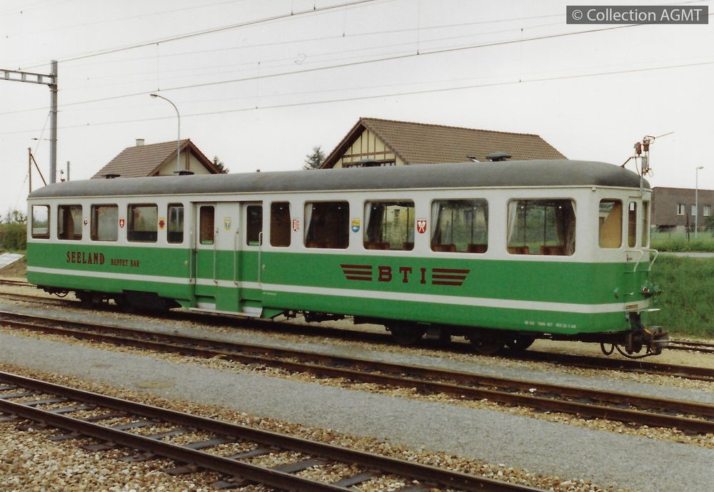 [Mots-clefs] 162 [Mots-clefs] Berne (canton) [Mots-clefs] Br4 [Mots-clefs] Chemin de fer privé [Mots-clefs] Seeland (nom de baptême) [Mots-clefs] Suisse [Mots-clefs] Taeuffelen [Mots-clefs] Taeuffelen (dépôt) [Mots-clefs] Voiture bar [Année] 1989 [Compagnie] BTI [Ligne] 261