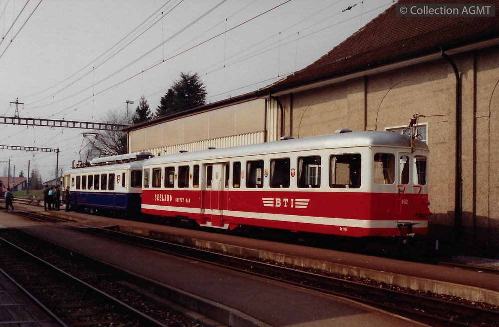 Un convoi restaurant du BTI, formé de l'automotrice BRe 516 et de la voiture Br 162 attend ses clients en gare de Taeuffelen [document graphique à deux dimensions] / Gaston Guignard, Photographe . - [S.l.] : Kodalux, 1992 . - 1 photographie : couleur ; 10 x 15 cm. Langues : Français ( fre) |  |