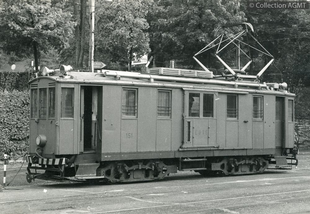 PermalinkDans la zone du dépôt de la Jonction réservée au service de la voie de la CGTE, le tracteur Fe 4/4 151 stationne en compagnie du wagon grue et l'automotrice Ce 4/4 63 avec le wagon de rabottage de l'usure ondulatoire des voies, X2 607 / Jim Jordan