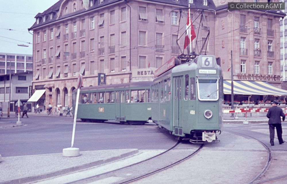 Code-barres Cote Support Localisation Section Disponibilité 6700013447 3141(494.231) BVB 1959/05 Photographie Bachet Photographies Disponible Convoi BVB de la ligne 6 à destination de Riehen Grenze formé de l'automotrice Ce 4/4 450 et de la remorque C4 1407 / Richard J.S. Wiseman