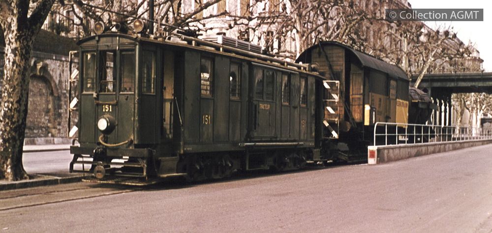 Code-barres Cote Support Localisation Section Disponibilité 6700018014 3148(494.45) BC 1972/02 Photographie Bachet Photographies Disponible Attelé au wagon grue, le fourgon automoteur Fe 4/4 151 de la CGTE stationne dans la zone Arve du dépôt de la Jonction en compagnie de l'automotrice de service Xe 2/2 681 / Jeremy Wiseman