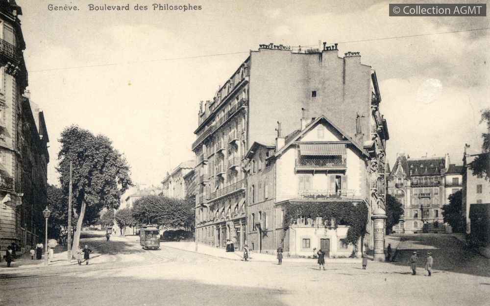Genève : boulevard des Philosophes [document graphique à deux dimensions] . - [S.l.] : Papeterie Genevard, [ca 1905] . - 1 carte postale : noir et blanc ; 9 x 14 cm. Langues : Français (fre)