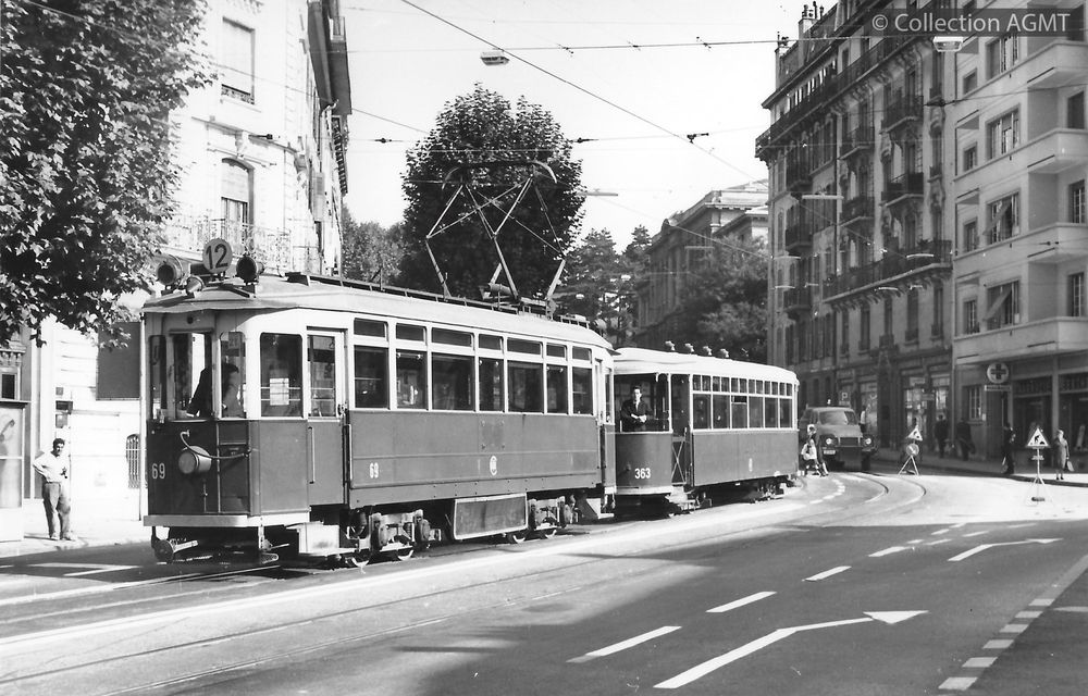 Genève, boulevard des Philosophes : un convoi CGTE de la ligne 12, formé de l'automotrice Ce 4/4 69 et de la remorque 363, rentre au dépôt de la Jonction par la ligne de Ceinture [document graphique à deux dimensions] / Jeremy Wiseman (1933-2022), Photographe . - [S.l.] : [s.n.], [ca 1968] . - 1 photographie : noir et blanc ; 9 x 14 cm. Langues : Français ( fre) |  |
