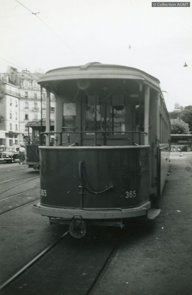 3141(494.42)_cGTe_1952-25.jpgImage JpegEn service sur la ligne 6 à destination de Conches, une automotrice CGTE série 55-59 quitte l'arrêt de Cornavin suivie par l'automotrice 131 en service sur la ligne 5 à destination du Molard / Christopher Michael Wiseman