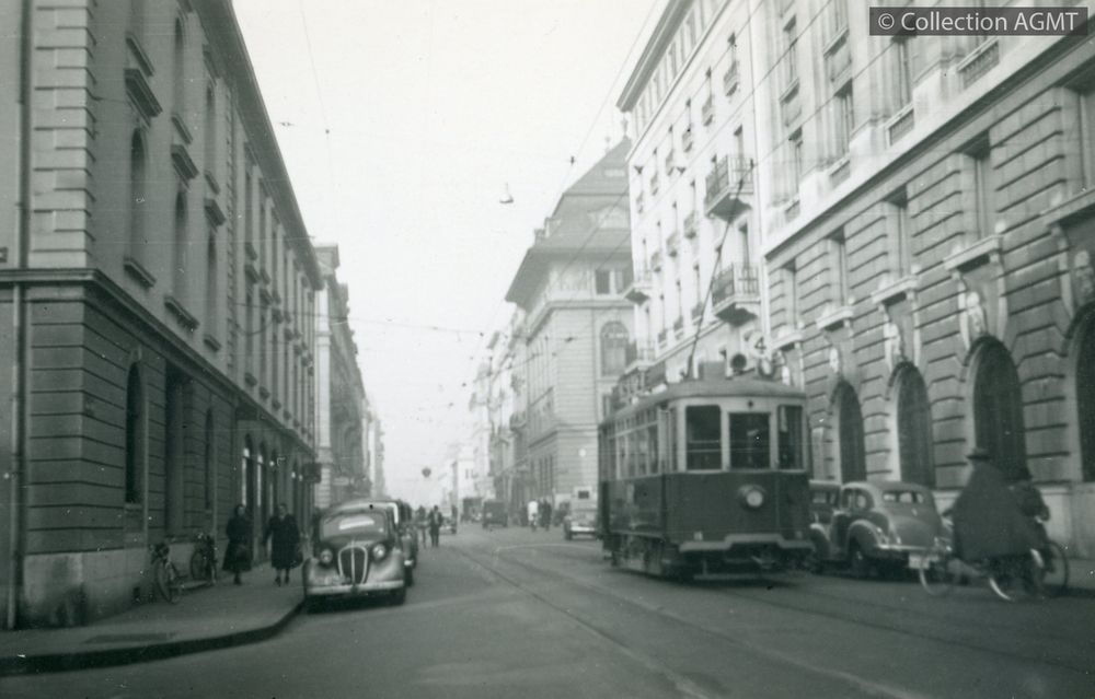 4141(494.42)_cGTe_1949-12_X2.jpgImage JpegEn service sur la ligne 4 à destination du Petit-Lancy, une automotrice CGTE série 1-24 circule à la rue du Stand / Christopher Michael Wiseman