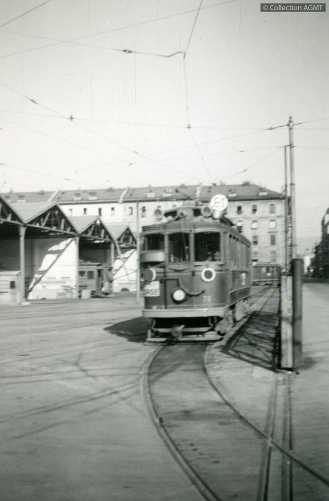 Affiner la recherche Interroger des sources externesL'automotrice 75 de la CGTE, qui a terminé son service sur la ligne 6-1, stationne devant les halles du dépôt de la Jonction / Christopher Michael Wiseman