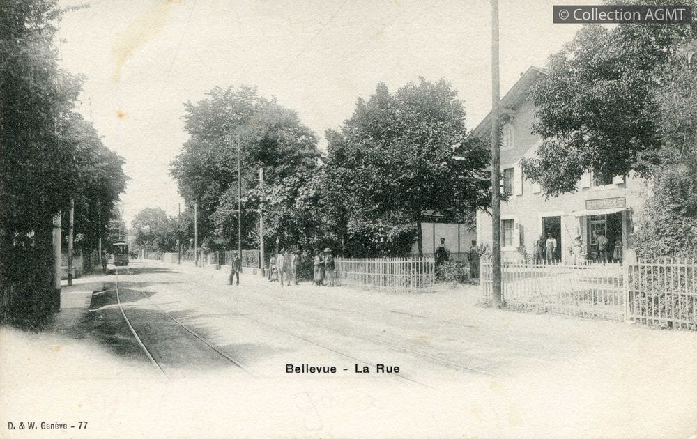 [Année] 1905Index. décimale : 4141 Tramway et métro léger interurbain et vicinal - véhicule - service régulier, transport de voyageur Bellevue : la rue [document graphique à deux dimensions] . - Genève : Druz & Warnery, [ca 1905] . - 1 carte postale : noir et blanc ; 9 x 14 cm. - (D. & W.; 77) .