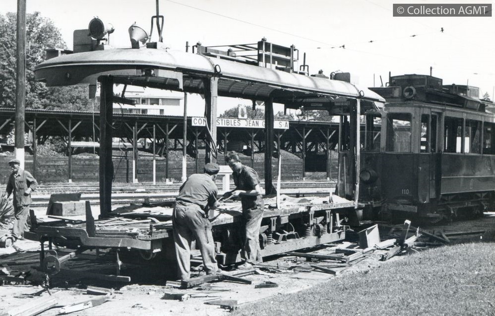 Affiner la recherche Interroger des sources externesAutomotrice de service Xe 2/2 609, ancienne automotrice TS de la 1ère série (104-119, 1894), devant le dépôt de la Jonction / Compagnie genevoise des tramways électriques