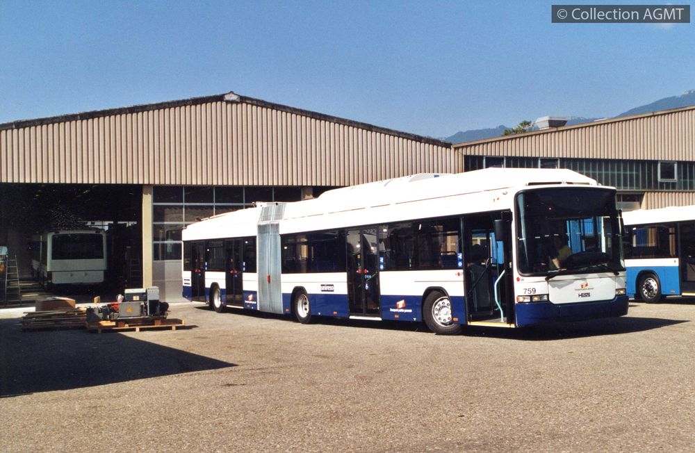 Bellach, carrosserie Hess : prêt au départ pour Genève, le trolleybus 759 des TPG est stationné dans la cour |