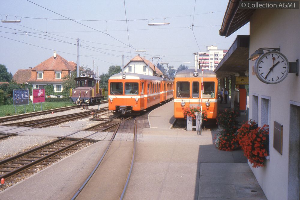 Deux rames réversibles du WSB attendent le départ en gare de Schoeftland où stationne également le tracteur de manoeuvre Te 2/2 47 [document projeté ou vidéo] / Jeremy Wiseman (1933-2022), Photographe . - [S.l.] : [s.n.], 1984 . - 1 diapositive : couleur ; 5 x 5 cm. Langues : Français ( fre) |  |
