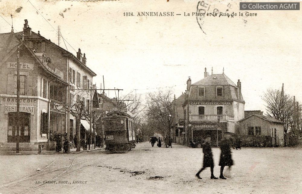 [Année] 1919Index. décimale : 3141 Tramway et métro léger urbain - véhicule - service régulier, transport de voyageur Annemasse : la place et la rue de la Gare [document graphique à deux dimensions] / Ad. Pariot, Photographe . - Annecy : Ad. Pariot, [ca 1919] . - 1 carte postale : noir et blanc ; 10 x 15 cm. - (Ad. Pariot; 1024) .