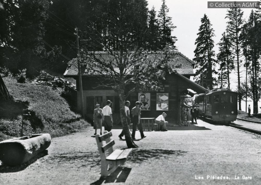 Les Pléïades : la gare [document graphique à deux dimensions] . - Zuerich : Photoglob-Wehrli, [ca 1960] . - 1 carte postale : noir et blanc ; 11 x 15 cm. - (Photoglob-Wehrli; n 012466) . Langues : Français (fre)