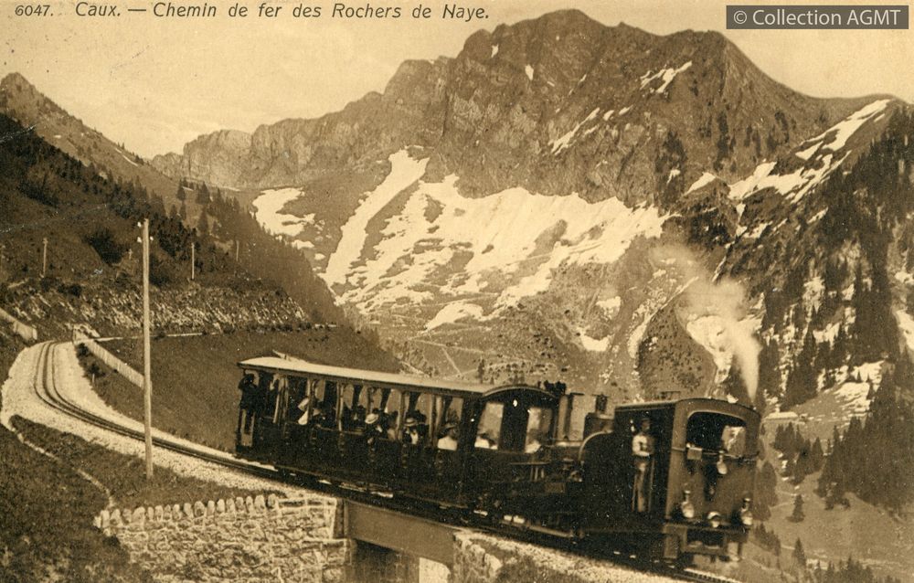 Caux : chemin de fer des Rochers de Naye [document graphique à deux dimensions] . - [S.l.] : [s.n.], [ca 1905] . - 1 carte postale : noir et blanc ; 9 x 14 cm. Langues : Français (fre)